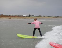 • Many students are able to stand up after just one surfing lesson. Middleton presents perfect learning waves.