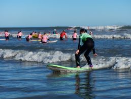 Students mastering the skill of surfing. This is one of the popular activities the highly qualified instructors from Victor Harbor Aquatics teach at Middleton.